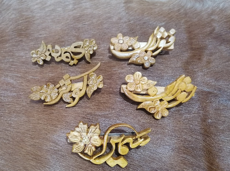 گیره موی چوبی در اندازه های مختلف قابل سفارش میباشد و طرحهاش به دلخواه و سلیقه مشتری هستش جهت سفارش با شماره 09306144926تماس بگیرید یا پیام بدهید تا با شما تماس بگیریم